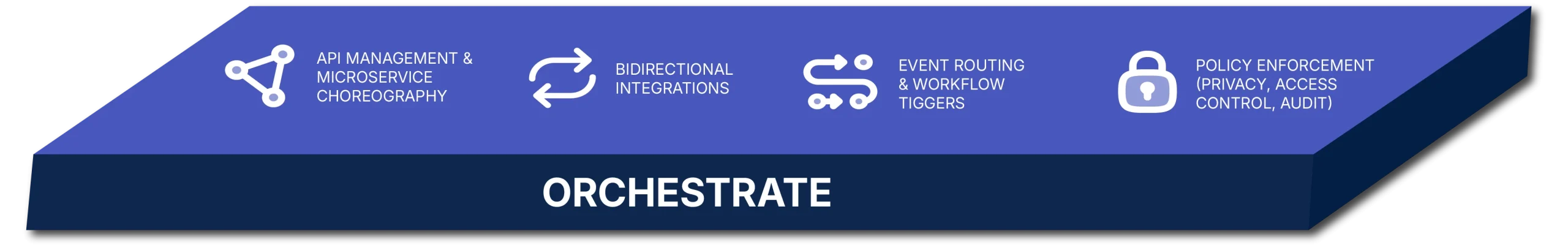 Orchestration ensures signals move cleanly from source → NIMBUS → Intelligence → Experience, in the right format and sequence.