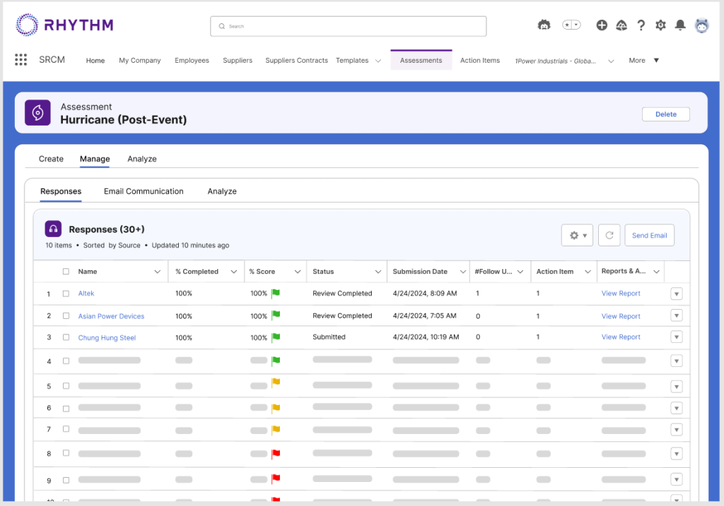 When a critical event occurs, speed is crucial. Rhythm provides tools for rapid response, including automated workflows and communication channels that ensure all stakeholders are aligned and informed. This reduces the time it takes to implement contingency plans, minimizing disruption and keeping you ahead of your competitors.